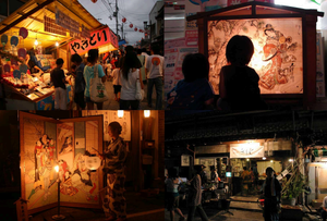 The Ekin Matsuri, known as one of the "two biggest festivals in Akaoka" along with the Dorome Matsuri, began in 1977. Held every year on the third Saturday and Sunday of July in the town's shopping district, the festival is filled with gold and silver paintings on folding screens and food stalls, and the town is filled with energy and vitality
